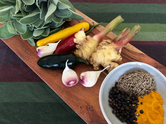Eine pikante Würzsoße stelle ich im Mixer aus geröstetem Salbei, Chilischoten, Knoblauch, Ingwer, Zitrone, Pfeffer, Salz, Olivenöl, Kreuzkümmel und Kurkuma her. Alle Zutaten fein pürieren und in gereinigte Gläser füllen. Diese im Kühlschrank lagern. 1-2 Teelöffel dieser Essenz kann morgens oder auch am Tag in gut warmen Wasser getrunken, oder aber auch als Würzsoße zu den Mahlzeiten gereicht werden.