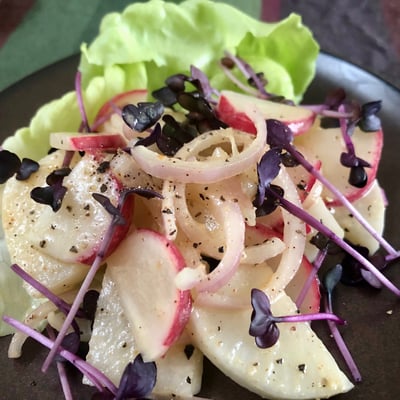 Ein feiner Salat aus Radieschen, Rettich, Kresse und Zwiebeln belebt Sinne und Stoffwechsel. Das Dressing wird aus Senf, Meerrettich, Honig, Leinöl, Salz und Pfeffer angerührt.