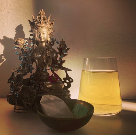 Dieses Getränk wirkt wunderbar erfrischend und belebend. Ich nehme gern Earl Green, das ist grüner Tee mit Bergamotte verfeinert. Oder einen zarten grünen Darjeeling.