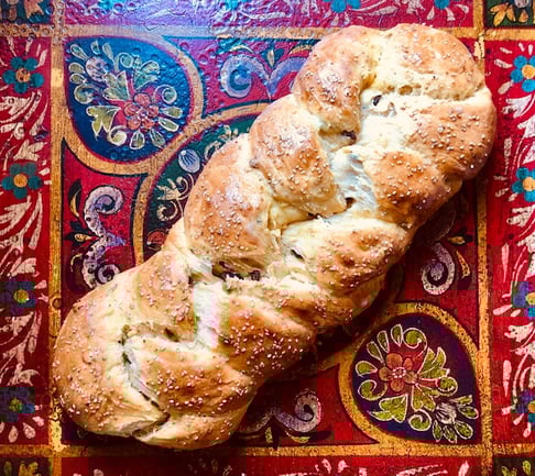 Für den Hefeteig 400g Dinkelvollkornmehl, 100g Buchweizenmehl, 1 Päckchen Trockenhefe, eine Prise Salz sowie je 1/2 TL Paprika, Cayenne, Zimt, Kümmel, Quendel und Ysop mischen. Mit 200ml warmen Wasser und 50ml Olivenöl zu einem Teig verrühren und gut kneten. Der Teig sollte weich und geschmeidig sein. Evtl etwas Flüssigkeit oder Mehl zufügen. An einem warmen Ort ca. 30-40min gehen lassen.