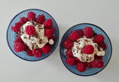 Wer mag, nimmt noch einen Klecks (Pflanzen-)Sahne, Kakaonibs, Minzblätter, Rosinen, einen Secco oder ein passendes Obstwässerchen dazu und genießt diese Köstlichkeit an einem schattigen Platz.